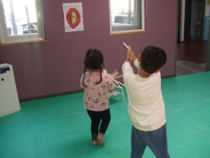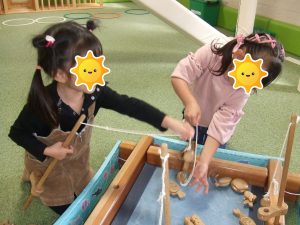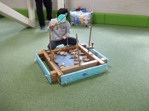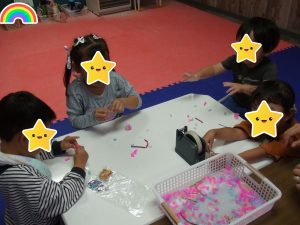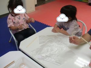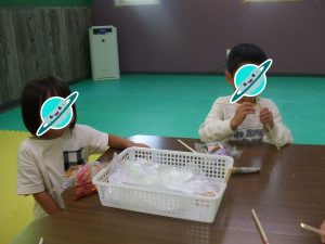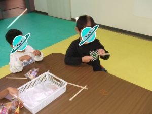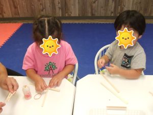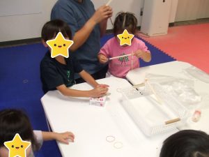 制作でゴム鉄砲を作って、的当てをしましたよ