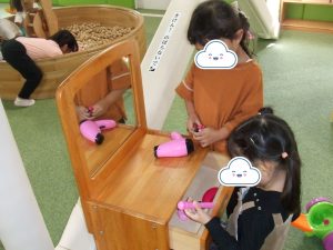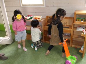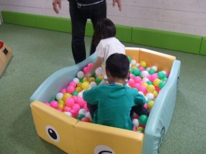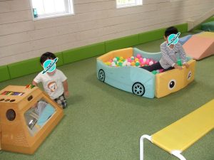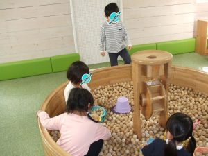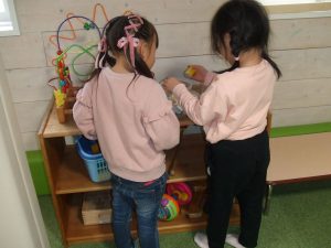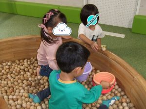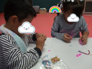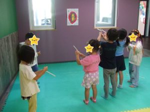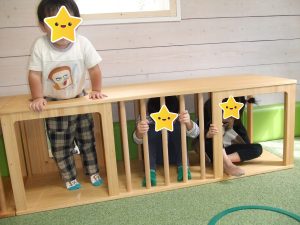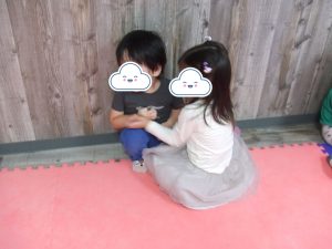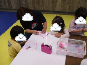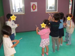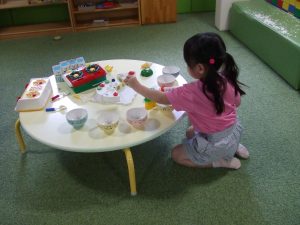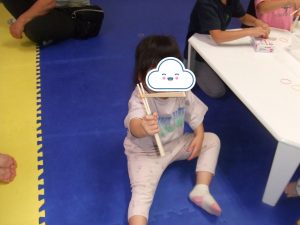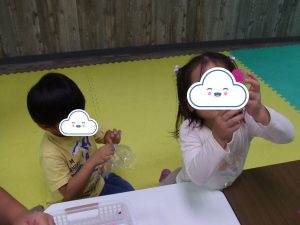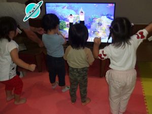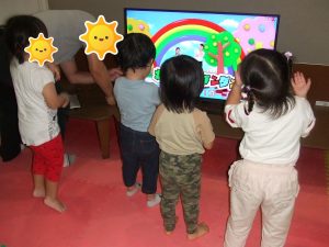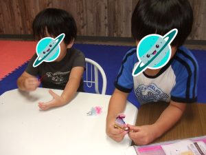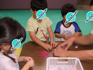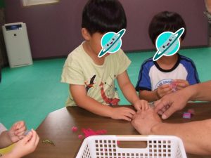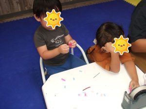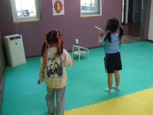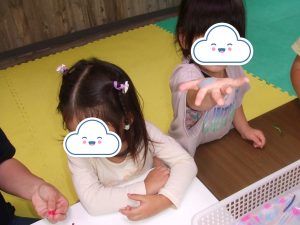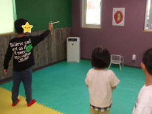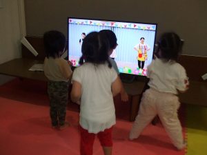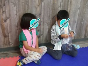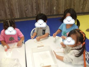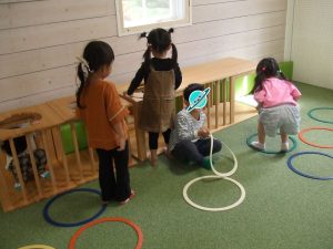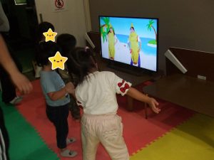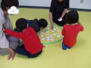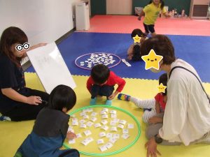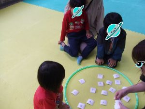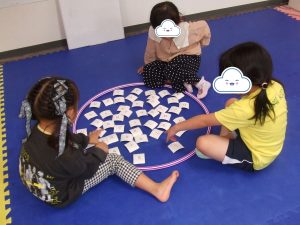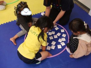 今日は、体操をするチームと文字合わせをするチーム、二つに分かれて