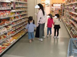 小学生のリーダーが幼児さん達を引っ張り、安全に買い物に行く事が出来ました。