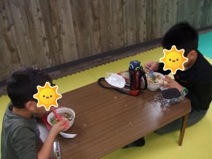 今日はクッキングで温かいうどんと、お蕎麦を作りました
