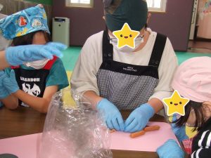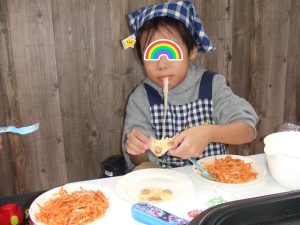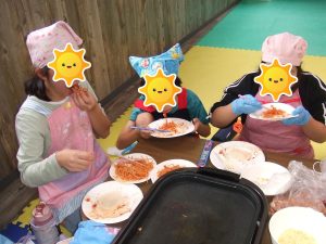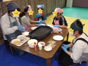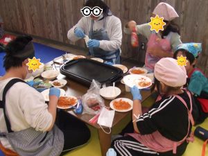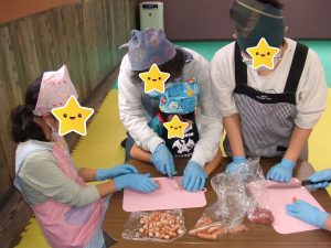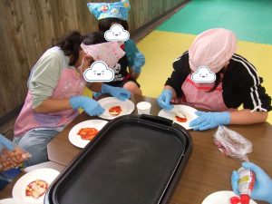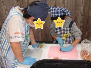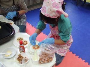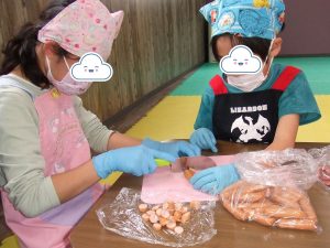 自分達で具材を切って・・・皮に具をのせて・・・