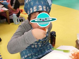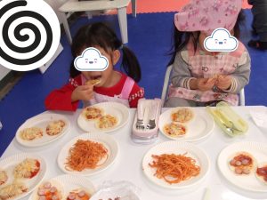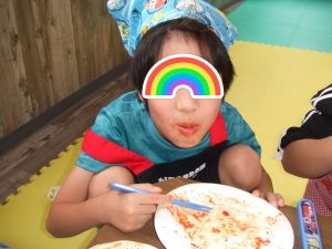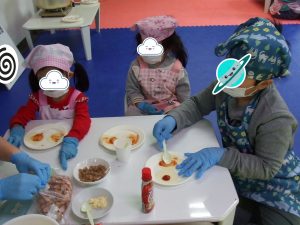 今日は、餃子の皮でピザを作り、ピザパーティーです