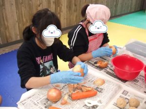 今日はクッキングでカレー作りに挑戦![]()