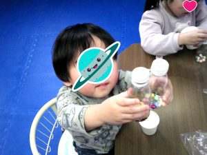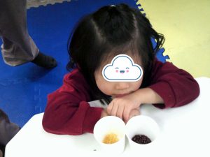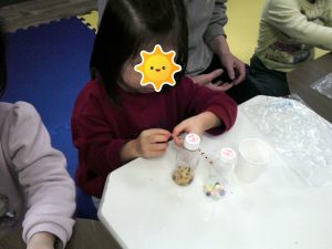 小豆やパスタを入れて、シールを貼りましたよ![]()