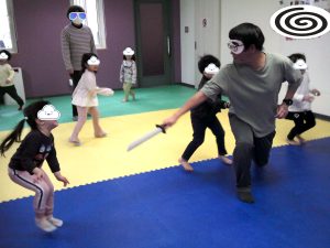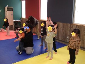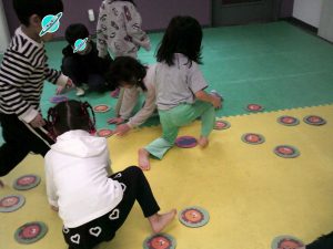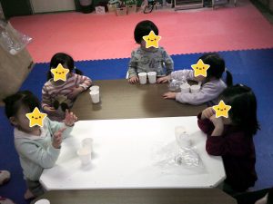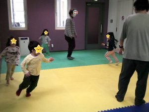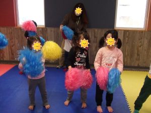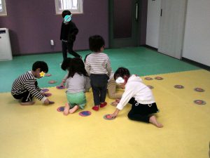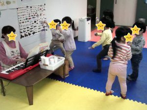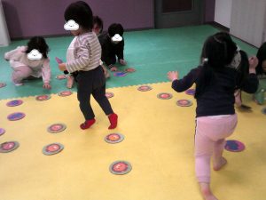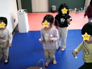 出来上がったら、歌に合わせてマラカスを鳴らして行進です![]()