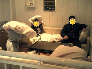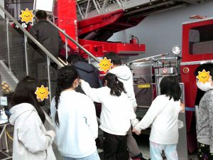 火災時の避難の体験では、みんな褒められました![]()