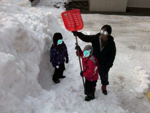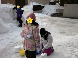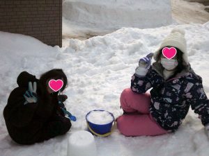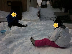 午後はいつものパターンで雪遊び![]()