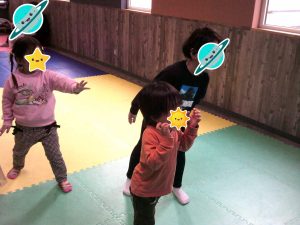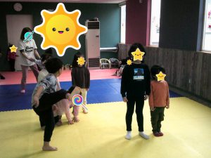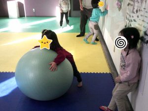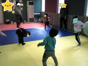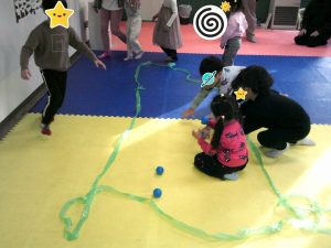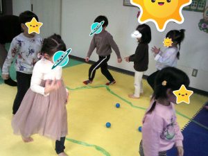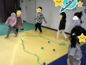 木曜日はボール取りゲームを行いました!音楽が止まった時にボールを一生懸命取りました!