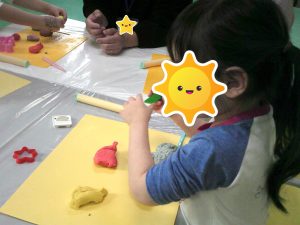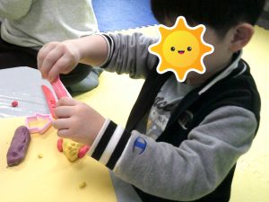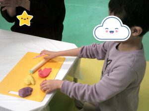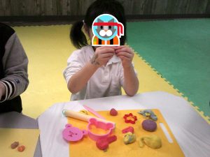 金曜日はハサミ練習と小麦粉粘土を行いました(*^▽^*)